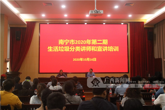广西新闻网南宁10月16日讯(记者 甘慧琴 实习生 易心一)为深入贯彻落实《南宁市生活垃圾分类管理条例》(以下简称《条例》),进一步宣传垃圾分类理念,10月16日,南宁市2020年第二期生活垃圾分类讲师和宣传员培训会在南宁市市政和园林管理局举行。