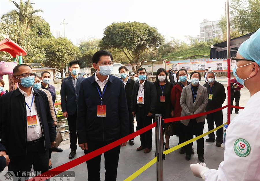 11月5日,自治区代主席蓝天立以自治区人大代表身份到柳州市柳江区拉堡镇开展“混合编组、多级联动、履职为民”活动。当天下午,蓝天立来到拉堡镇卫生院考察当地常态化疫情防控工作,调研了解基层公共卫生事业建设情况。记者 梁凯昌 摄